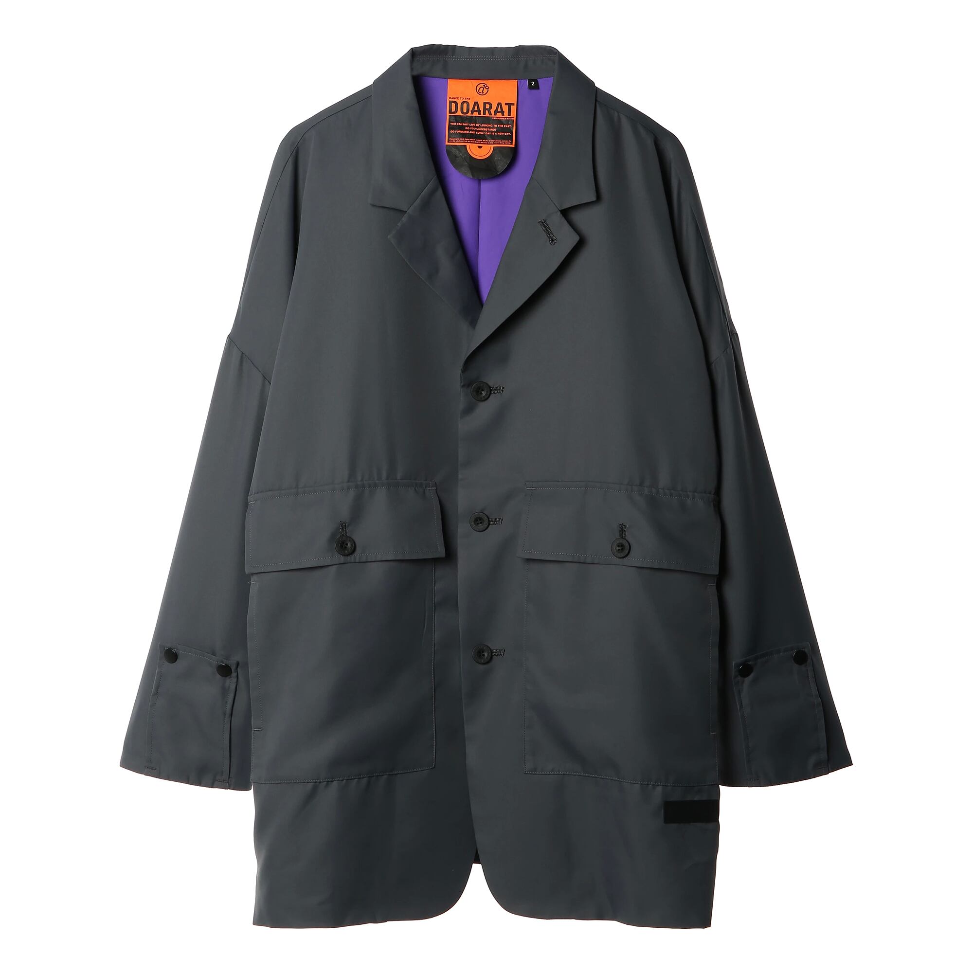 フロントには存在感のあるダブルフラップポケットを配置し、ワークやミリタリーの要素をプラス。袖口のボタンディテールなど、細部までこだわり抜いたDOARAT渾身のギミックアウターです。