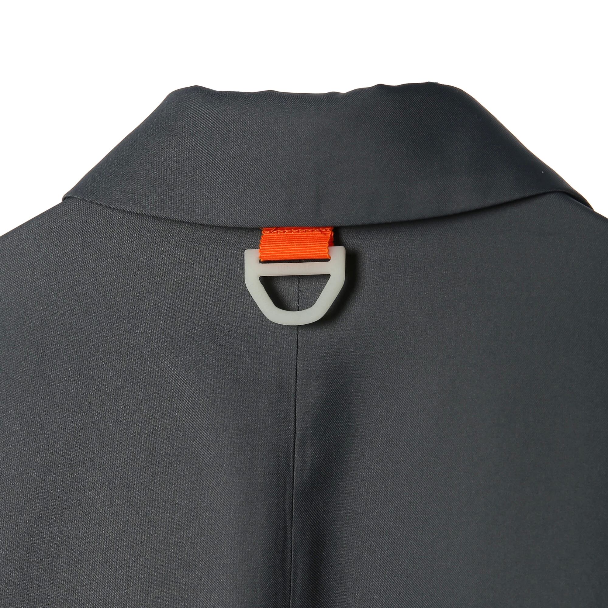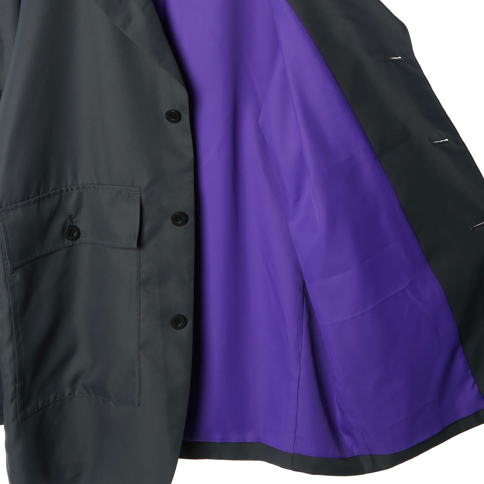 一見するとシックなブラックジャケットですが、裏地には発色の良いカラーを採用。歩く際や着脱時にチラリと覗くカラーが、凡庸な黒のアウターとは一線を画す個性を放ちます。