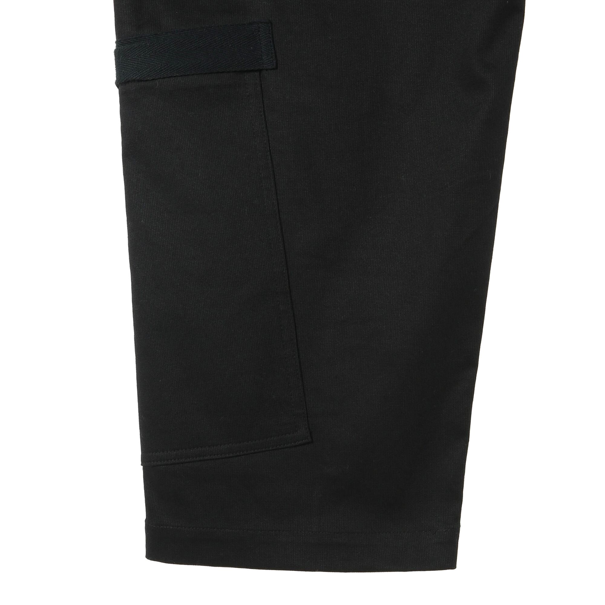 フロントからサイドにかけて配置された、配色のウェビングテープとジップポケットが、武骨ながらも都会的なサイバーパンク・エッセンスを演出します。 左右非対称に配置されたポケットレイアウトは、見る角度によって異なる表情を見せ、シンプルなトップスと合わせるだけで圧倒的なスタイリングを完成させます。 ブランドのこだわりが詰まった、まさに「穿くギア」と呼ぶにふさわしい一着です。