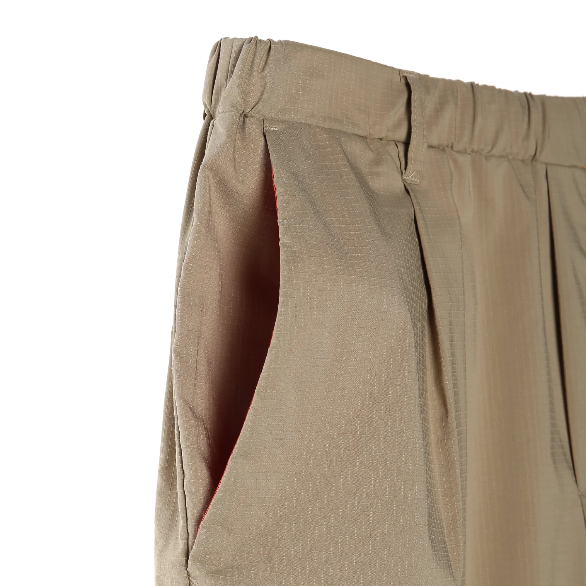 タックを入れることで腰回りに程よいボリュームを持たせ、裾にかけて急激に絞り込むことで、体型を選ばずスマートに見える黄金シルエットを完成させました。絶妙なクロップド丈は、スニーカーやサンダルとの相性が良く、ソックスを見せるスタイリングも自由自在。