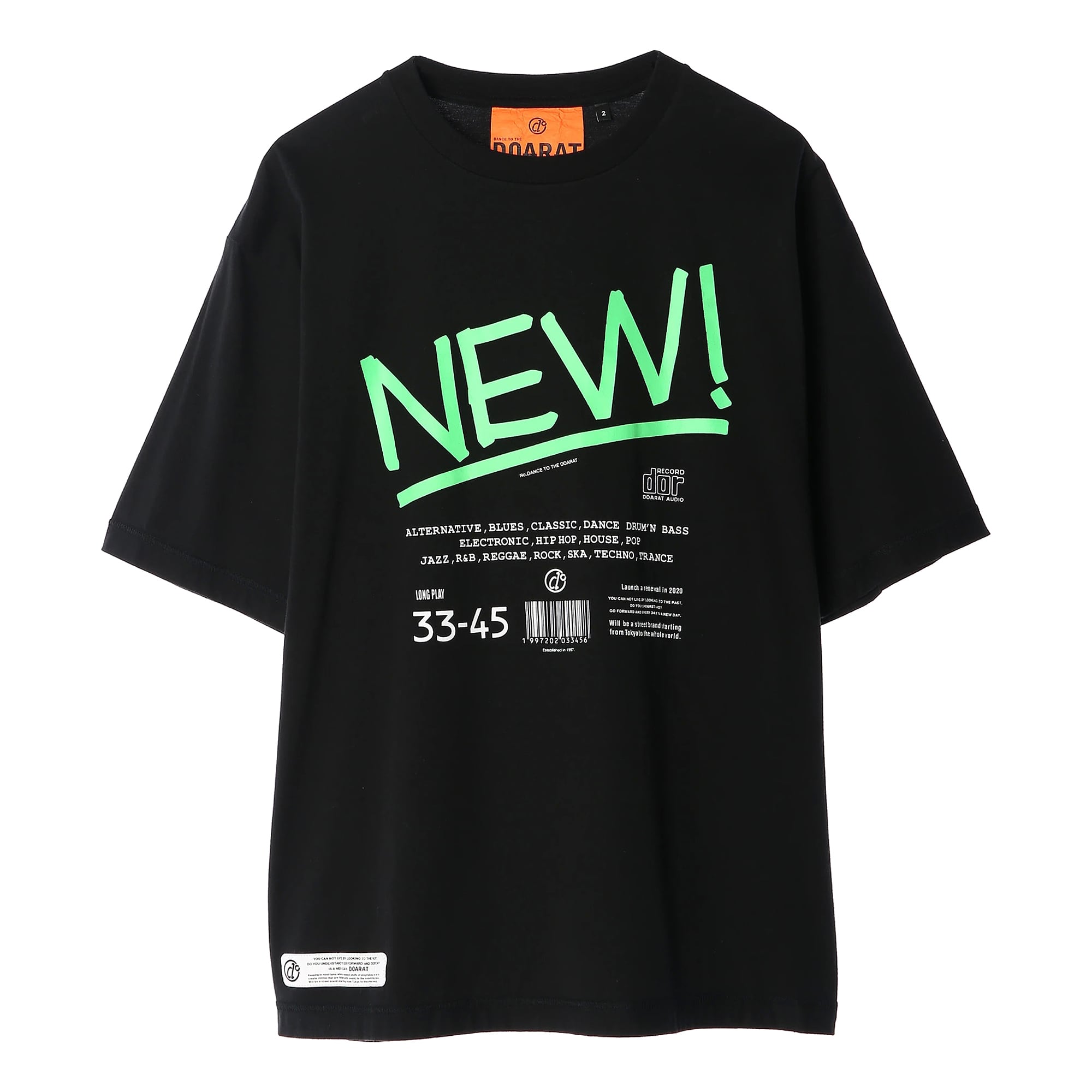 フロントには、レコードショップのステッカーを彷彿とさせる「NEW!」のネオングラフィック。見た目のインパクトだけでなく、着る人の快適さまで計算し尽くされたプレミアムな一枚です。
