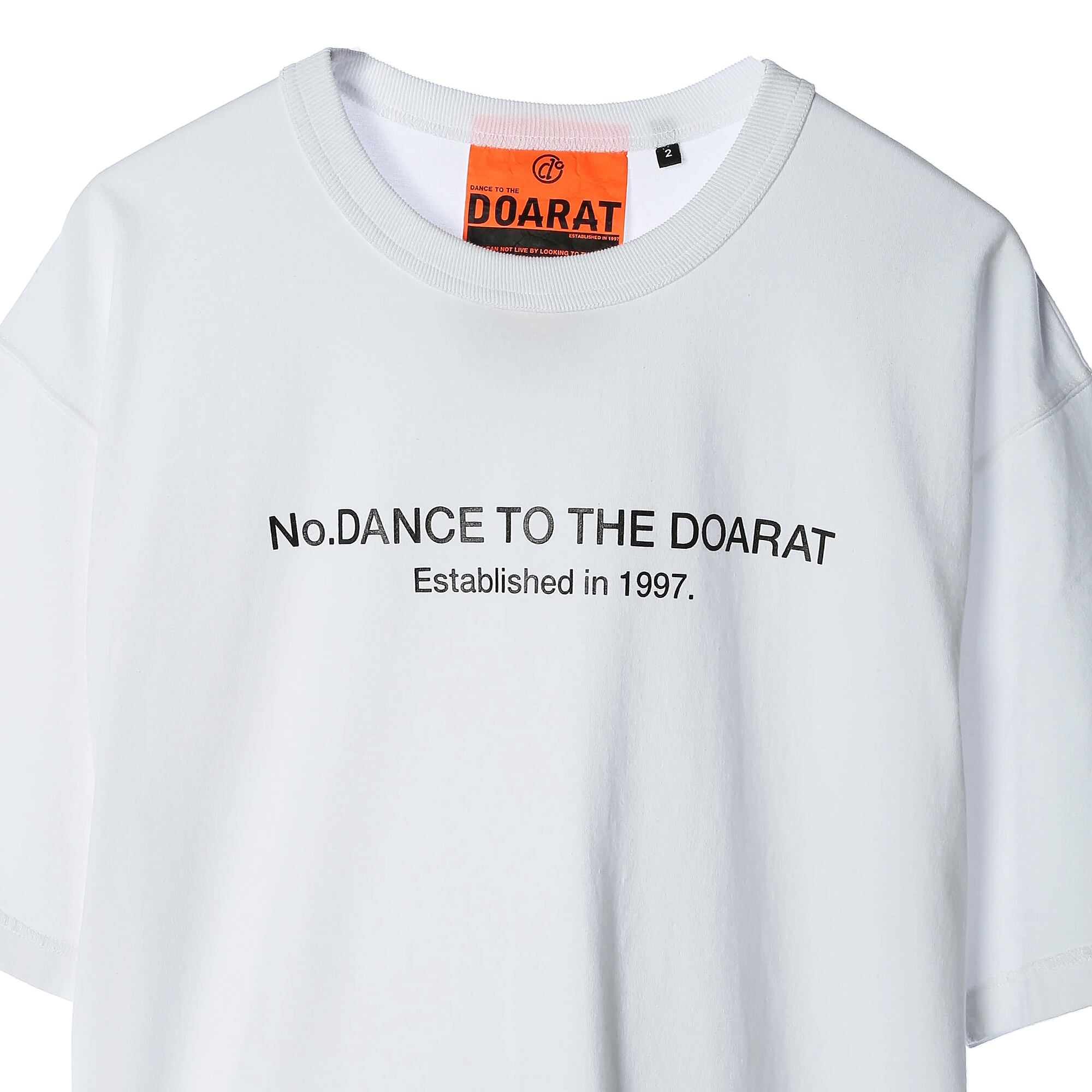 フロントには象徴的な「No.DANCE TO THE DOARAT」のタイポグラフィを配置。ボディには、ガシガシ洗っても型崩れしにくい肉厚なヘビーウェイトコットンを採用しました。着込むほどに肌に馴染み、自分だけのヴィンテージ感を楽しめる一着。