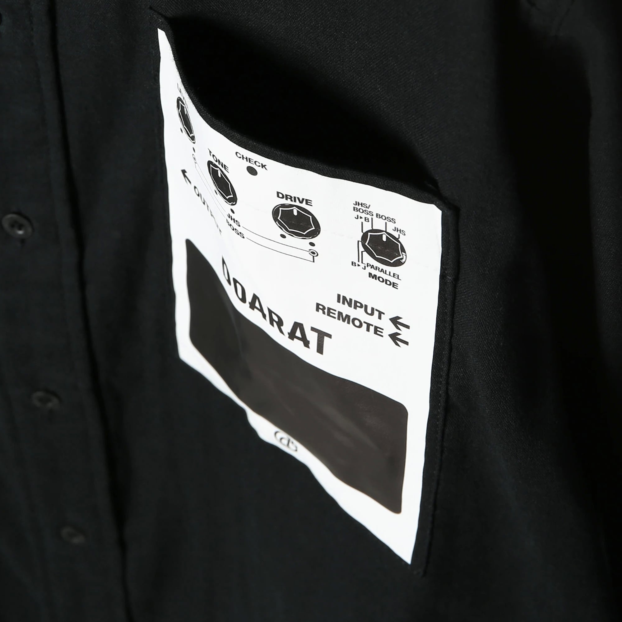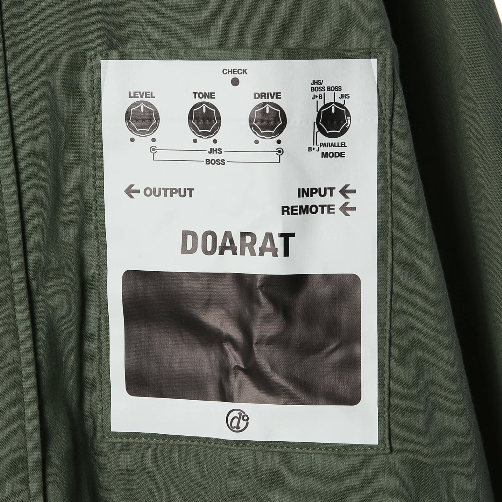 左胸には、機材のコントロールパネルを模した遊び心溢れるパッチを配置。ミリタリーライクなオリーブカラーと、ガーゼの優しい質感が絶妙にミックスされた、大人のためのストリートウェアです。