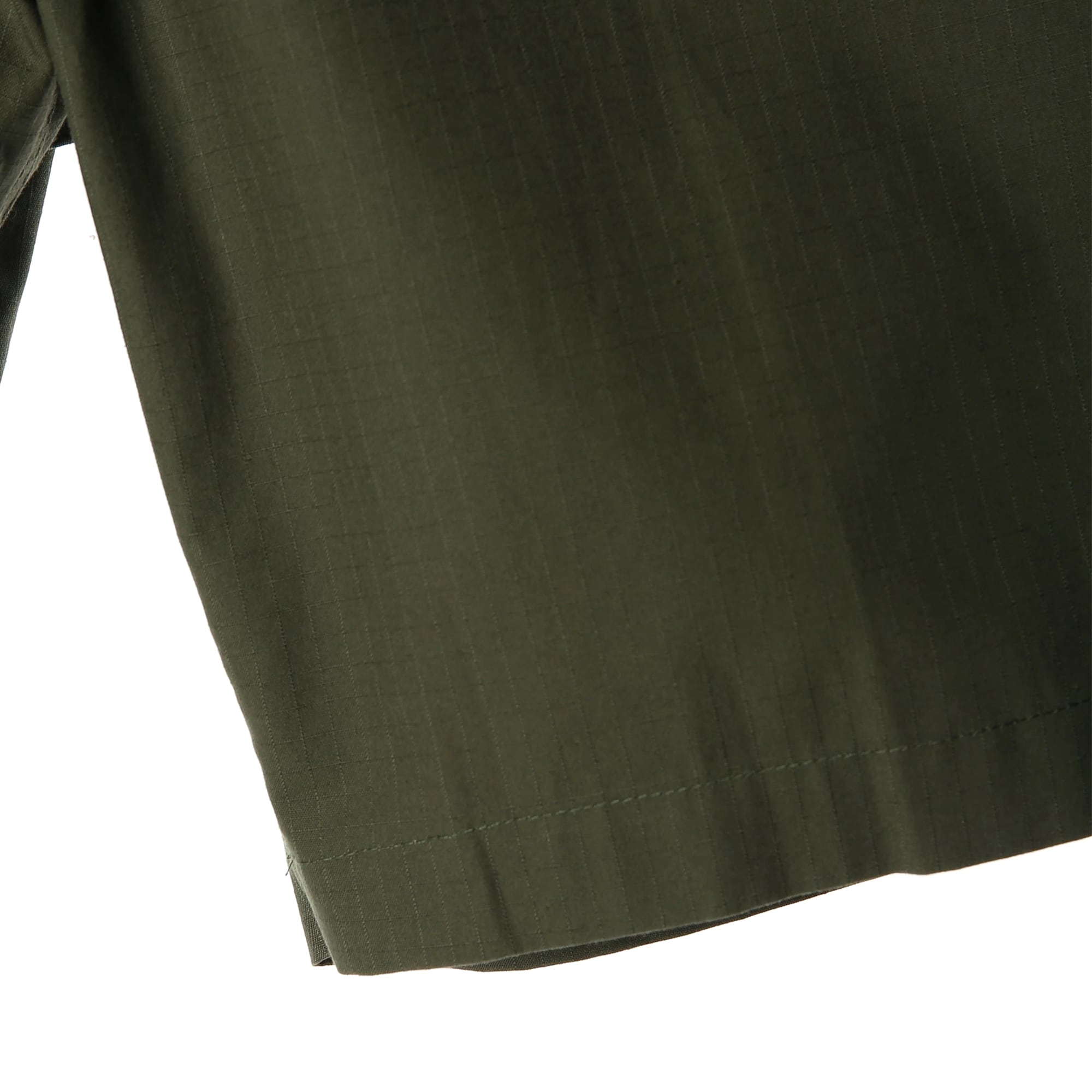 フロントからサイドにかけて配置された大胆なメッシュパネルが最大の特徴です。同シリーズの「ミリタリーメッシュコンビ半袖シャツ」とセットアップで着用することで、統一感のある都会的なタクティカル・スタイルが完成します。
