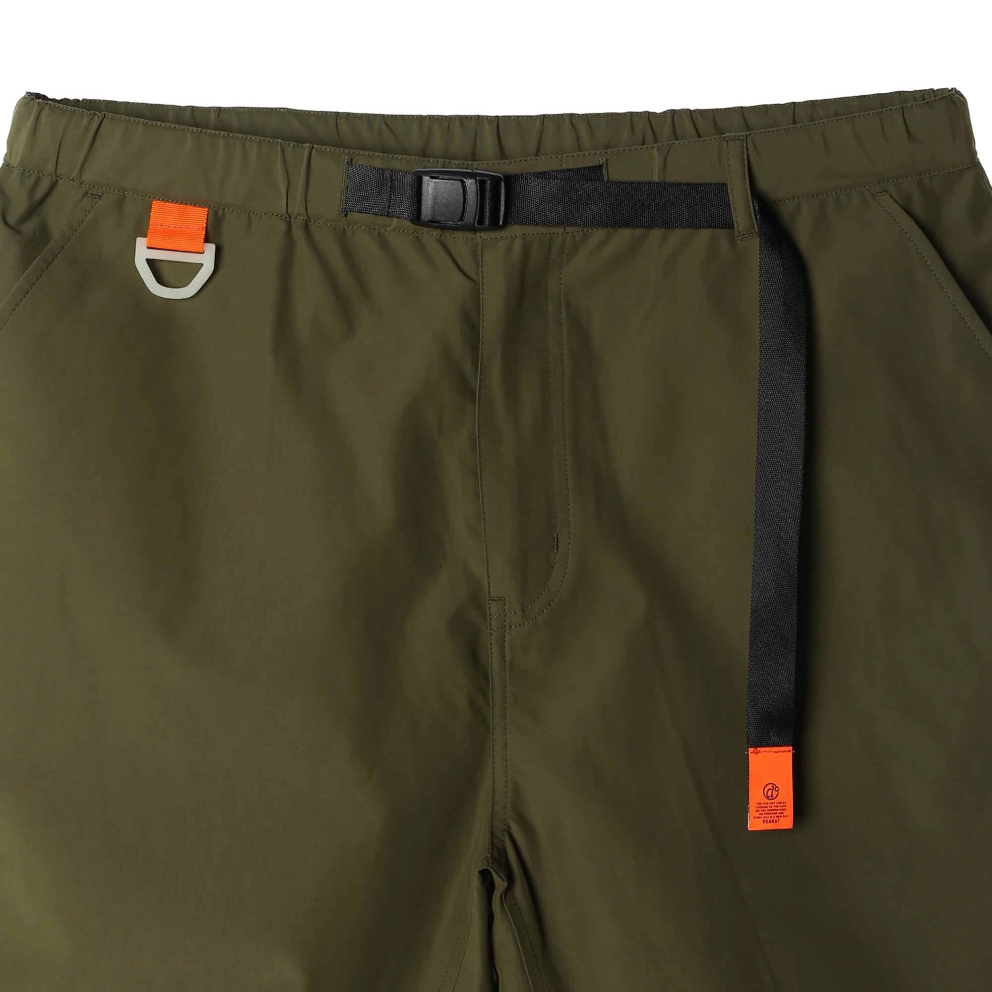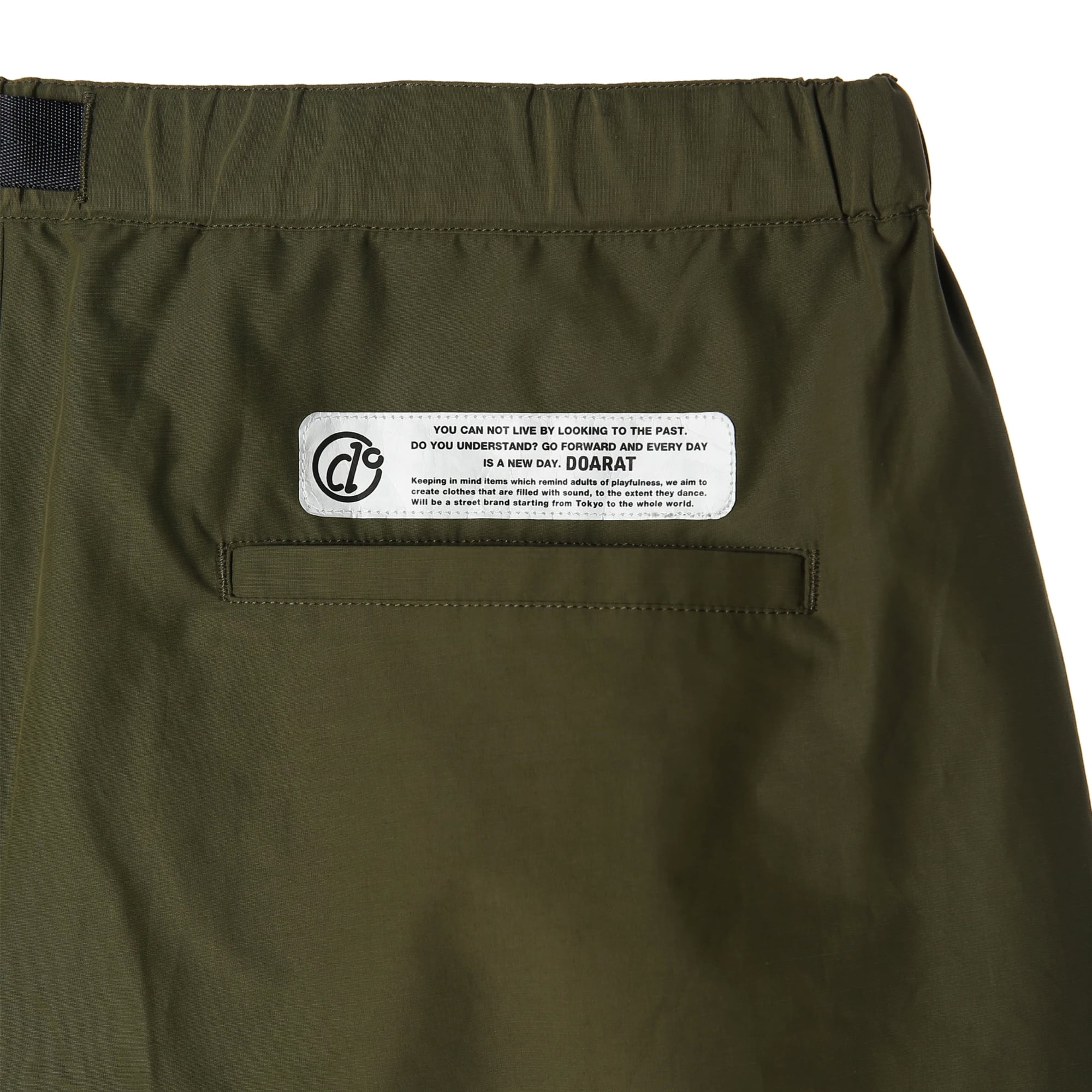 股下には、足の可動域を最大化する**「ガゼットクロッチ」**を採用。180度の開脚もスムーズに行えるため、スケートボードやキャンプ、フェスなどのアクティブなシーンでもストレスゼロの穿き心地を実現しました。ウエストは片手でクイックに調節できるウェビングベルト仕様。