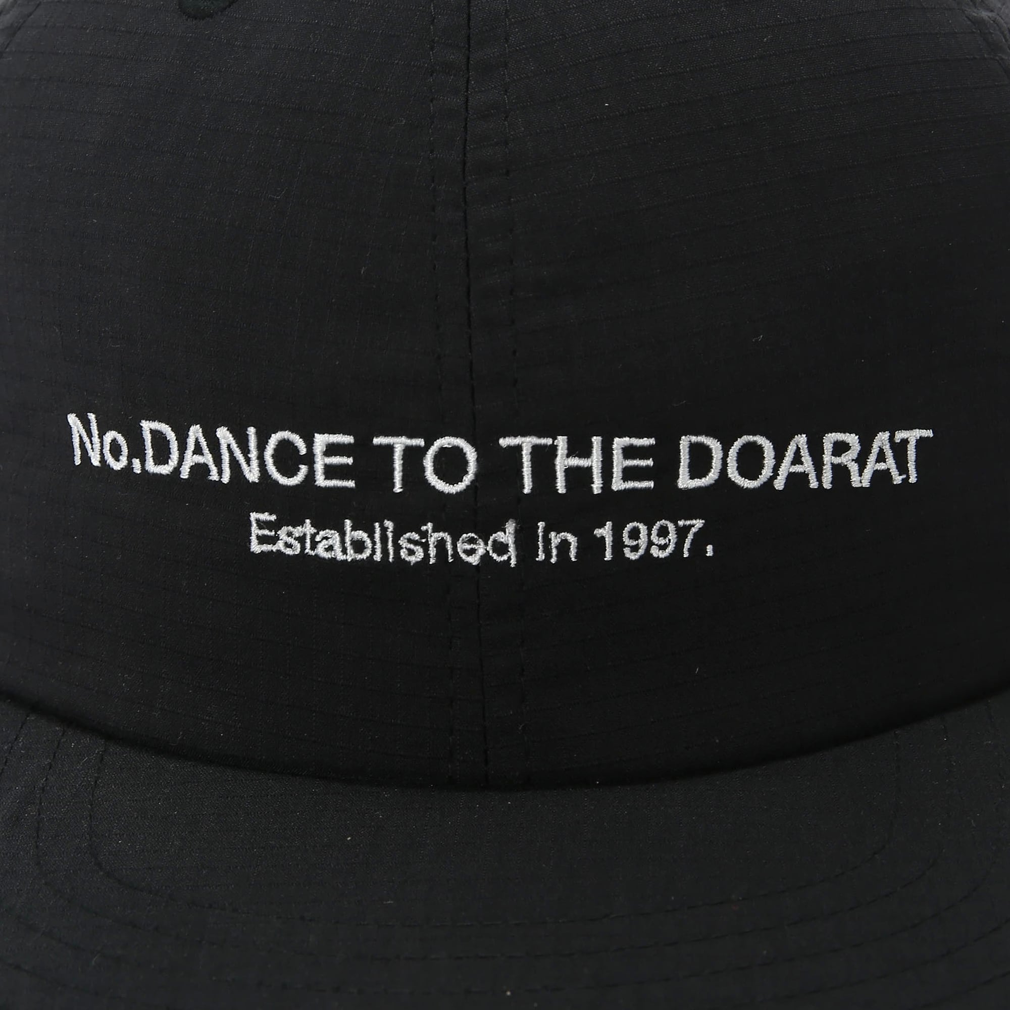 格子状に編み込まれた生地は、万が一破れても伝線を防ぐタフさが魅力。フロントにはブランドのアイデンティティである「No.DANCE TO THE DOARAT」のメッセージを刺繍で施しました。