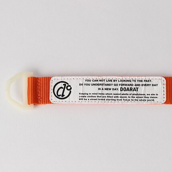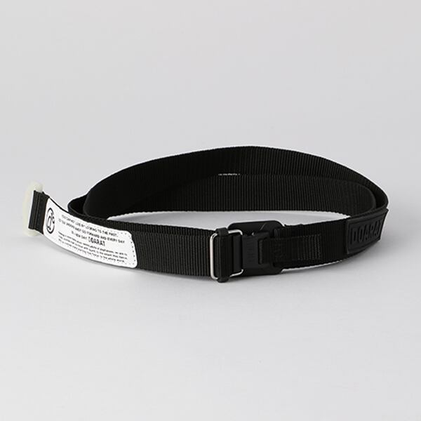 バックルにはスムーズな着脱とサイズ調整が可能な軽量パーツを採用し、アクティブなシーンでもストレスフリーな使い心地を実現しました。ベルトの端には、DOARATのメッセージが刻まれたタイポグラフィタグと、重厚感のあるブランドロゴパッチを配置。